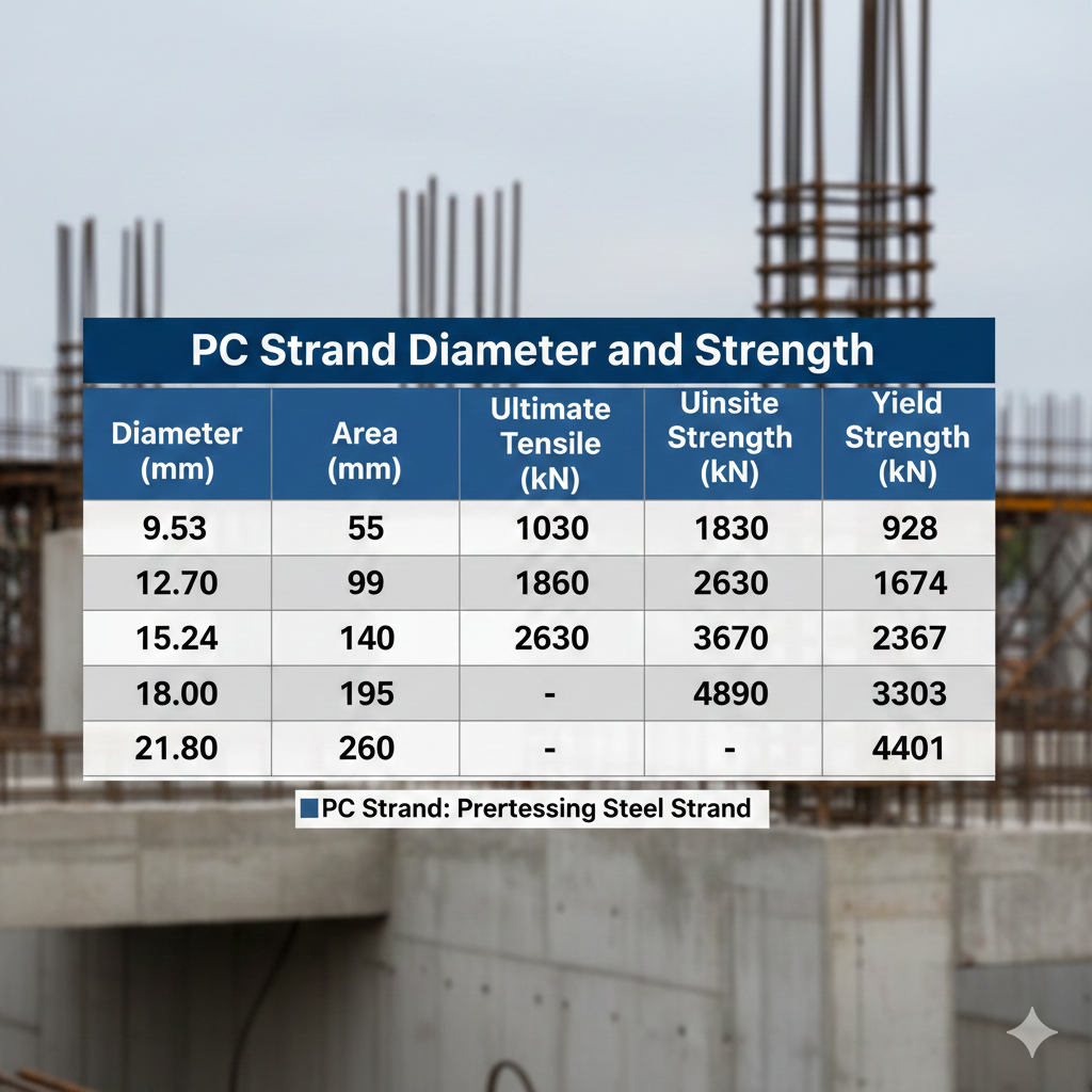 TJ Wasungen provides ASTM-compliant PC Strands in all diameters/grades, with charts and custom packs. Contact via WhatsApp +86-13622011252 or sales@tjwasungen.com.