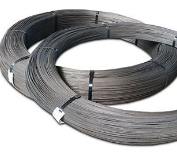 High-tensile steel wire used mainly in prestressed concrete.